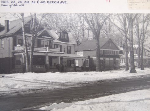 Site of proposed development on west side of Beech Avenue, photographed by the planning board February 1963. Source: City of Toronto Archives, Fonds 2032, Series 840