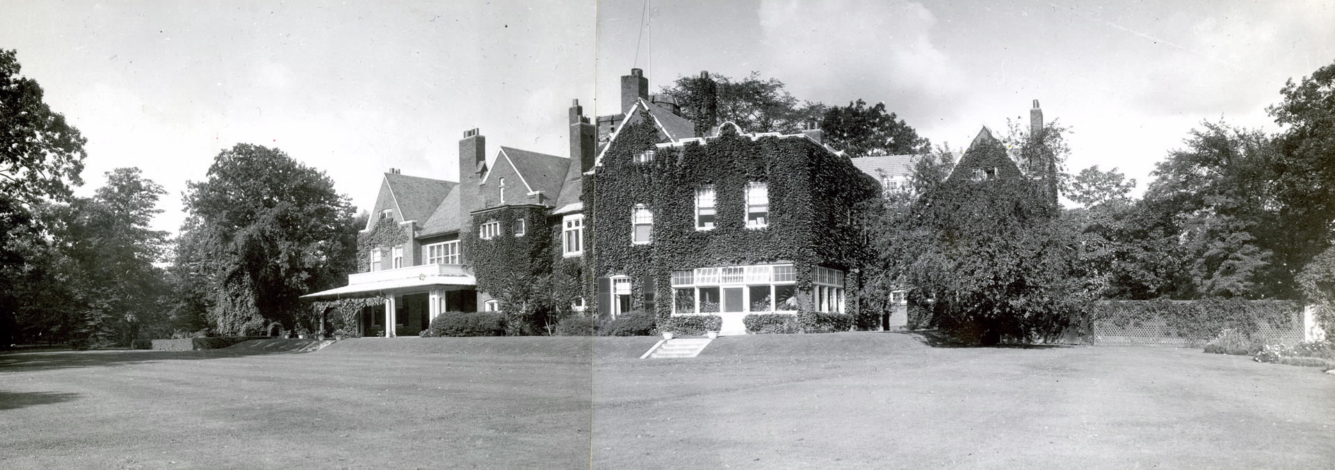 Kemp family home overlooking Don Valley from the west side, c.1946. A pair of prints mounted side by side in photo album. Source: Toronto Reference Library, Baldwin Collection, S 15-39.