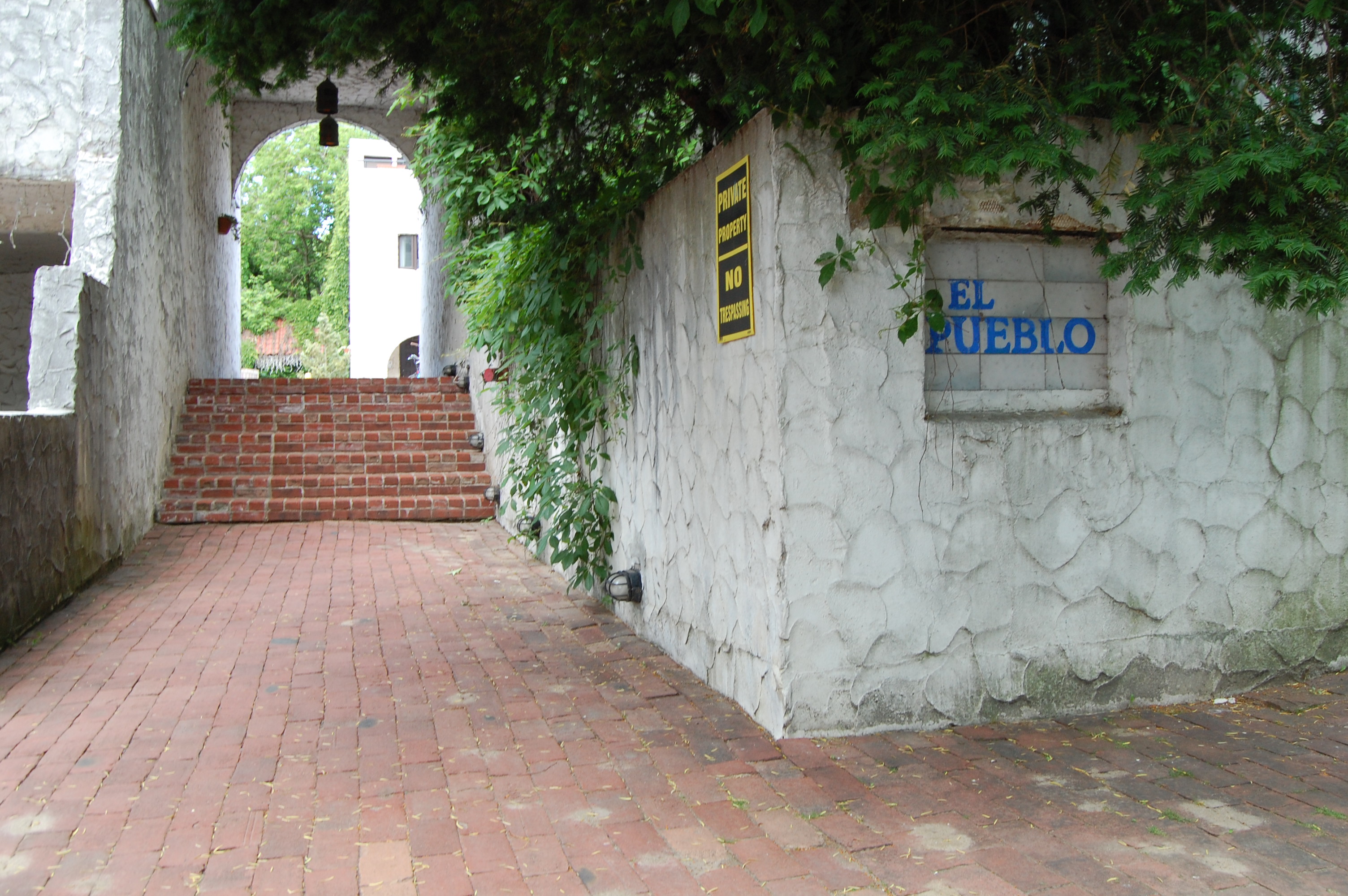 And with this the project disappears from the planning board’s records, one of scores of development proposals so rejected. But River Oaks still owned all the property, and had to do something with it for they likely had no desire to remain in the home-rental business. High-rise development had been rejected for the site, but low-rise had not – there were already several apartment buildings in the area – and a few years later a most unusual three-storey Mission Revival style townhouse complex called “El Pueblo” was built on the site, with a faux-adobe exterior, a flat roof, and a broad red-brick courtyard into which the units opened. Who built El Pueblo (was it River Oaks, or did they sell the land to another developer?), or even more intriguing who designed it – this style had been popular in the American southwest earlier in the century, but was rare in Toronto – seems to have escaped council and planning board records, which is understandable since a building that meets the zoning of its site does not usually require municipal review, and I have not taken the time to investigate further.